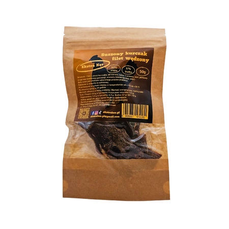 To najciekawszy smak z całej drobiowej serii: chude mięso kurczaka połączone z naturalnym aromatem wędzenia daje efekt zbliżony do klasycznego wędzonego mięsa, tylko w formie lekkiej, suszonej przekąski.