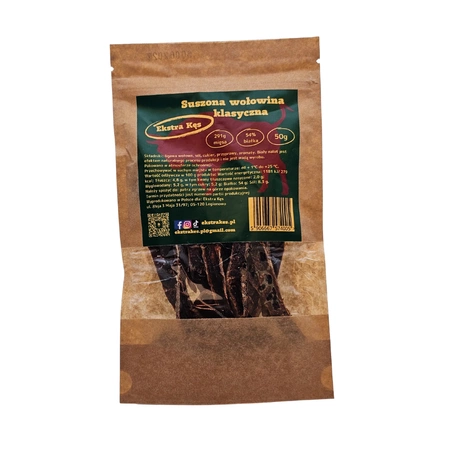 To jest absolutna baza i punkt odniesienia dla wszystkich innych smaków. Klasyczna suszona wołowina – bez nadmiaru przypraw, bez zbędnych dodatków, po prostu czyste, solidne mięso z lekką nutą przypraw.